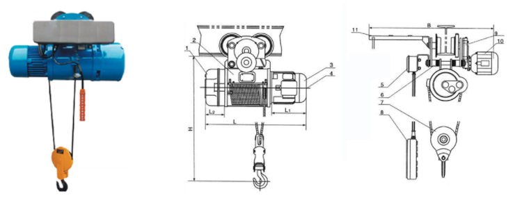 BPCD、BPMD型系列電動葫蘆技術(shù)性能和外形尺寸參數(shù)(0.25T-20T)