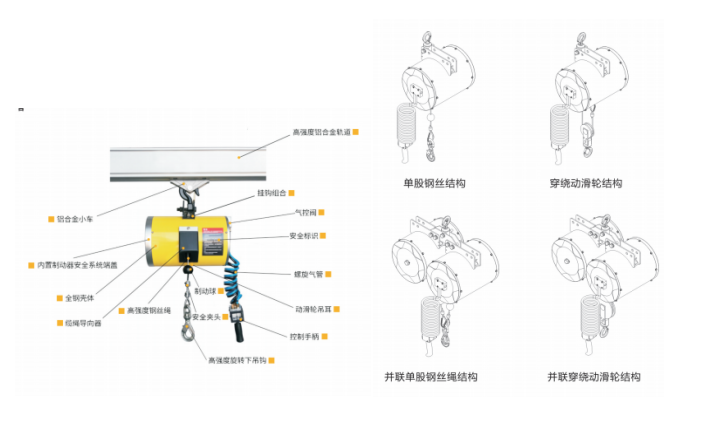 動(dòng)滑輪鋼絲繩氣動(dòng)平衡吊 | ||||||