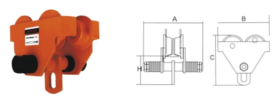 GCT系列單軌小車(chē)用途:廣泛地適用于工廠、礦山、碼頭、倉(cāng)庫(kù)、建筑工地等,單軌小車(chē)用于安裝機(jī)器設(shè)備,吊運(yùn)貨物的場(chǎng)合,單軌小車(chē)尤其適用于無(wú)電源地點(diǎn)的作業(yè)。