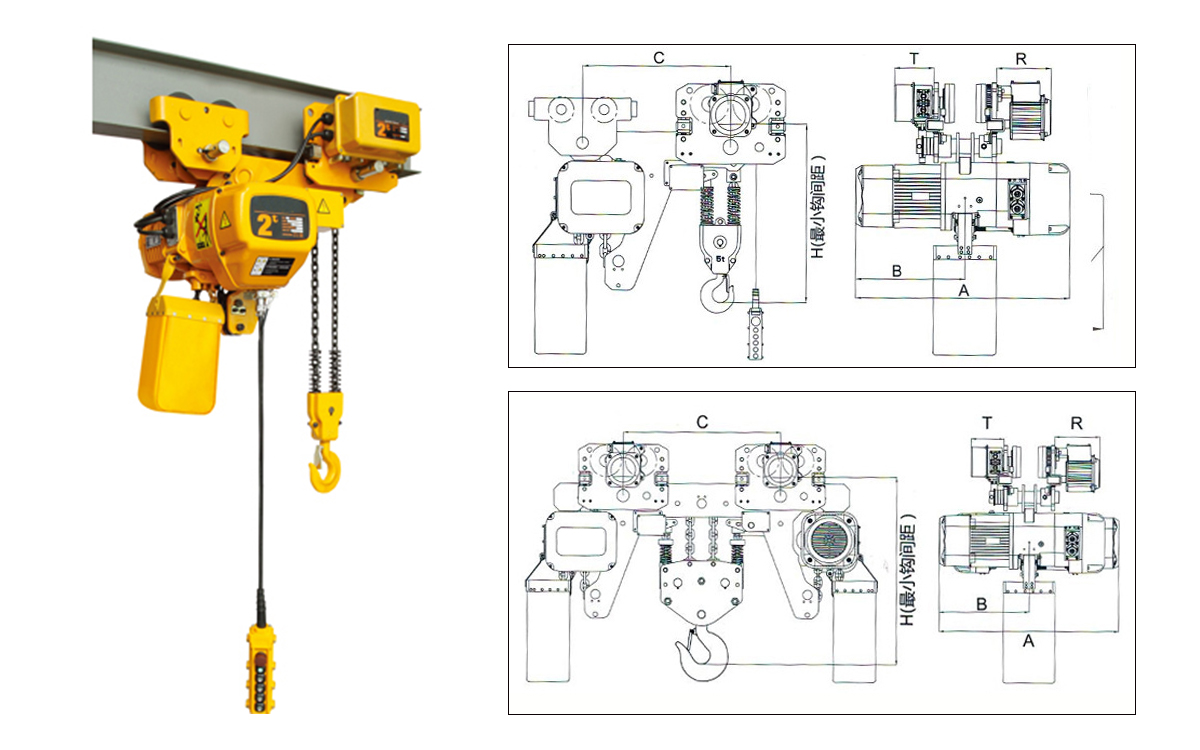 低凈空環(huán)鏈電動(dòng)葫蘆適用于廠房高度較低又對(duì)提升高度有嚴(yán)格要求的工作場(chǎng)所使用,尤其適用于臨時(shí)搭建的廠房?jī)?nèi)或者在其內(nèi)需要擴(kuò)大有效起升空間的場(chǎng)所。低凈空環(huán)鏈電動(dòng)葫蘆由2個(gè)跑車以及一個(gè)電動(dòng)主機(jī)組合而成。